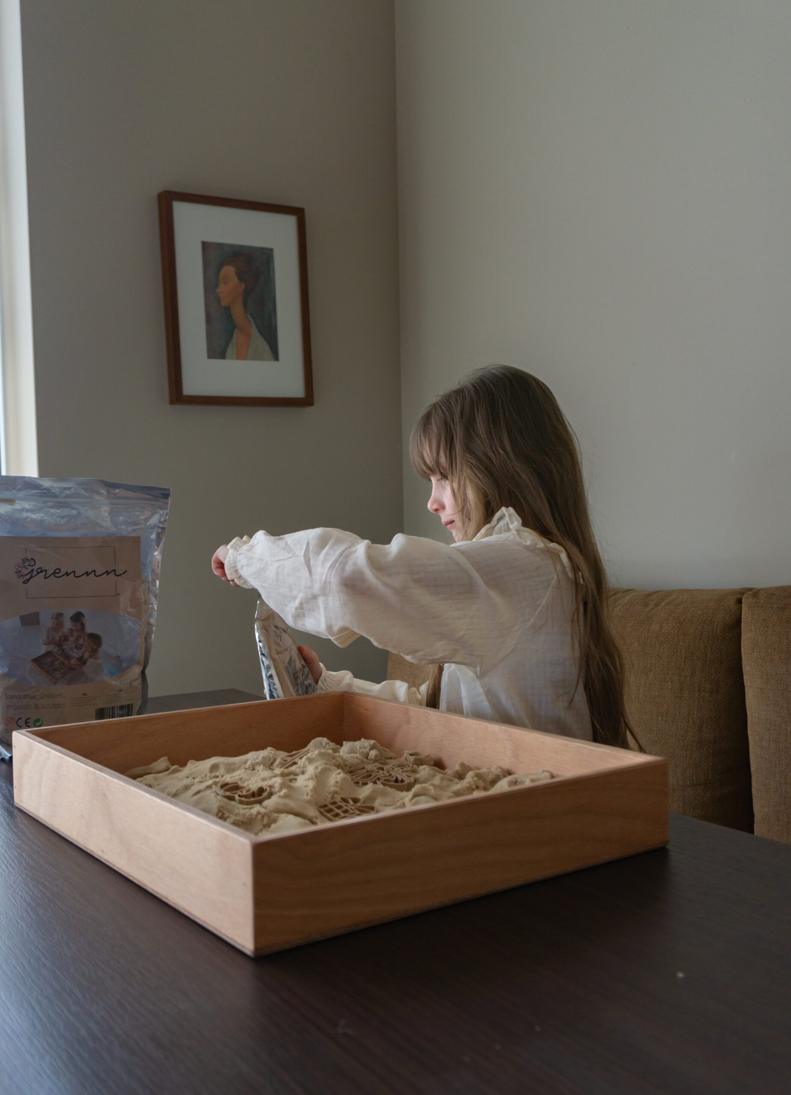 De Grennn speelbak is speciaal ontworpen voor sensorisch spel en open-ended play. Vul de bak met kinetisch zand, of bijvoorbeeld speelrijst en laat kinderen ontdekken, voelen en experimenteren. Door te scheppen, gieten, sorteren en bouwen oefenen ze hun fijne motoriek, stimuleren ze hun zintuigen en ontwikkelen ze hun creatief denkvermogen.