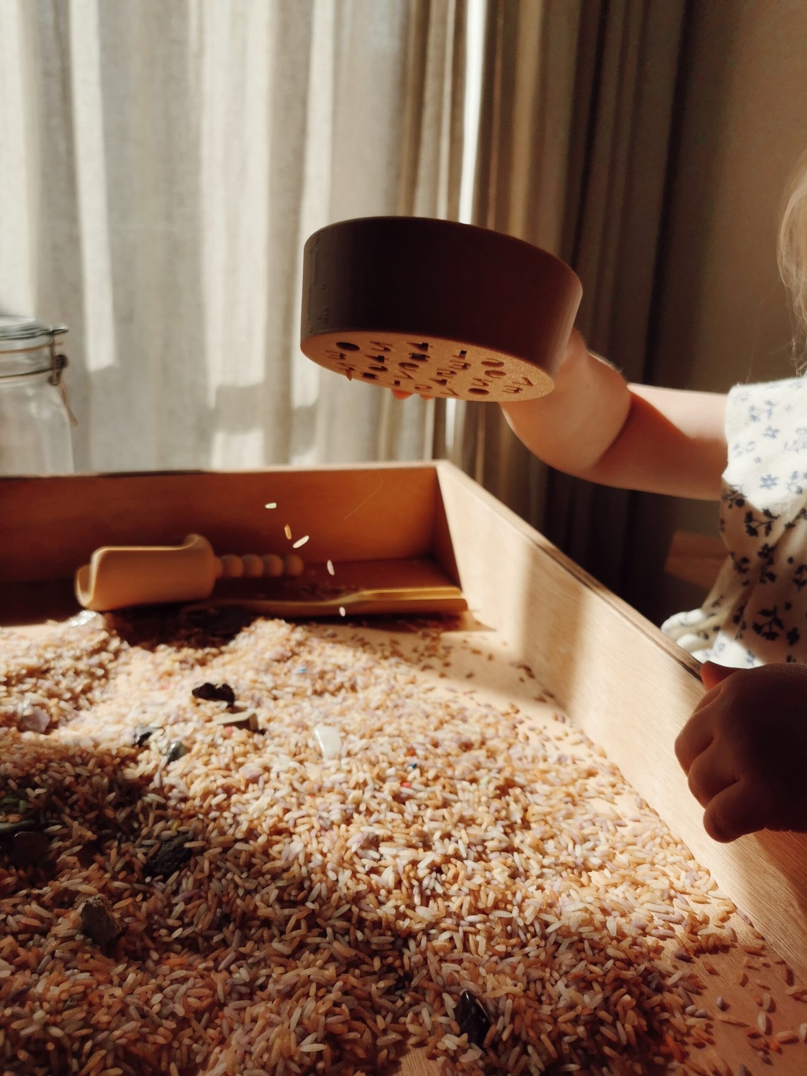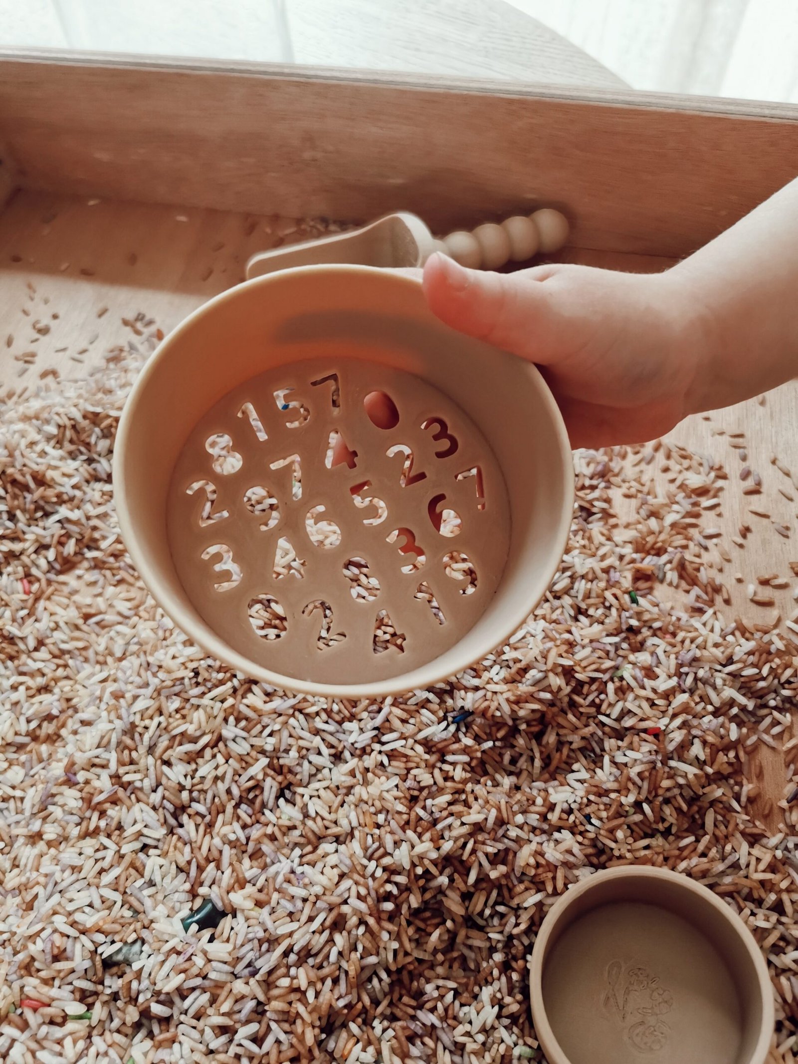 Dit milieuvriendelijk zeefje is ontworpen en gemaakt door Grennn. Elk zeefje is gemaakt van gerecycled houtzaagsel en biologisch afbreekbaar plastic van plantaardige oorsprong. Kinderen zullen het spelen met een zeefje geweldig vinden. Het is het ideale speelgoed in combinatie met zand en rijst .
