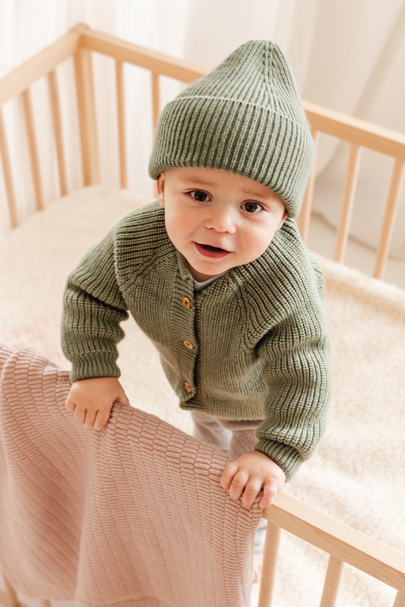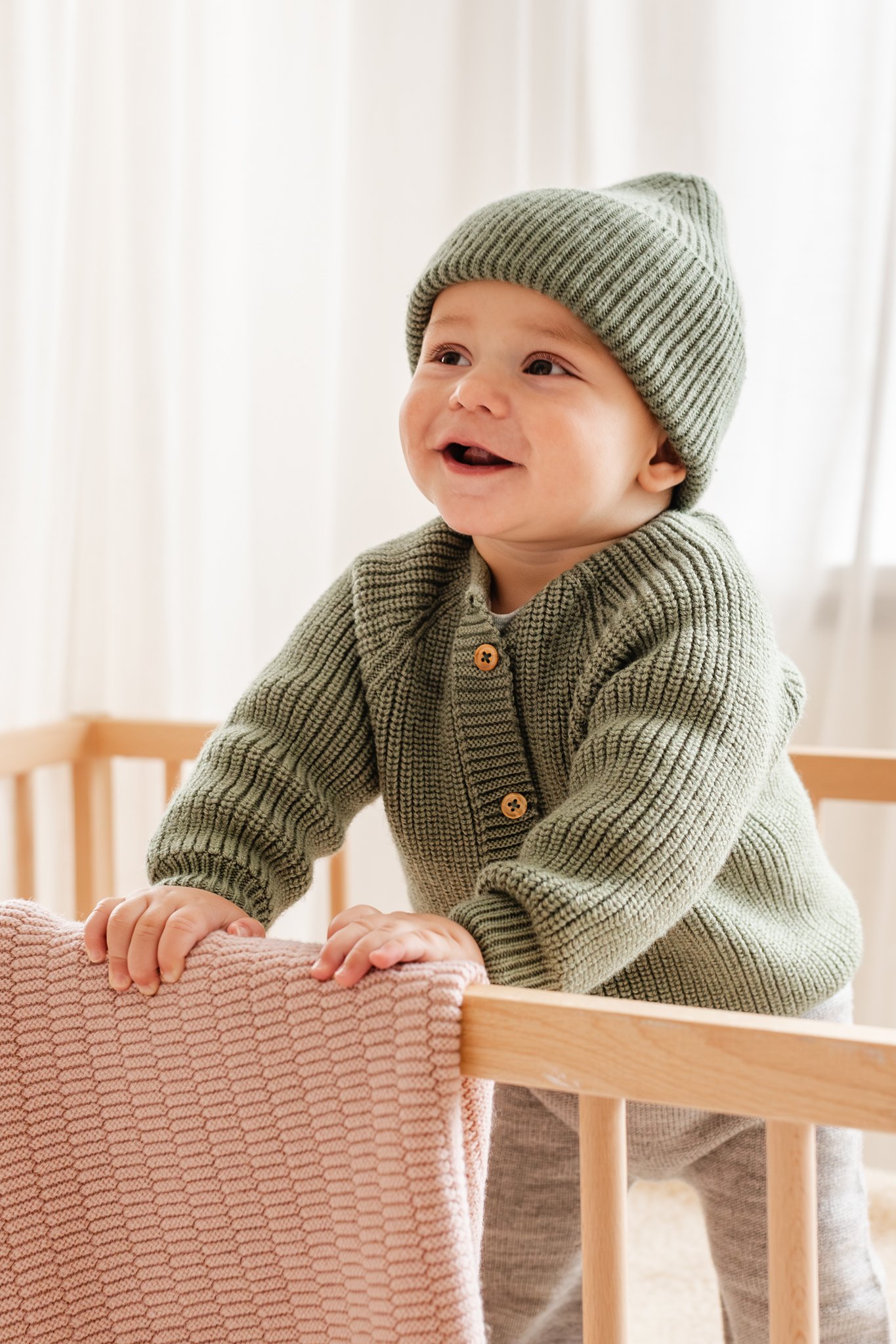 Dit vest is naadloos in één stuk gebreid, wat zorgt voor uitzonderlijk comfort voor je baby. Elastische halslijn, met een subtiel rekbaar draadje, biedt extra stretch en gemak. Gemaakt van zachte visgraatsteek en afgewerkt met schattige houten knopen, is dit vest zowel stijlvol als praktisch.